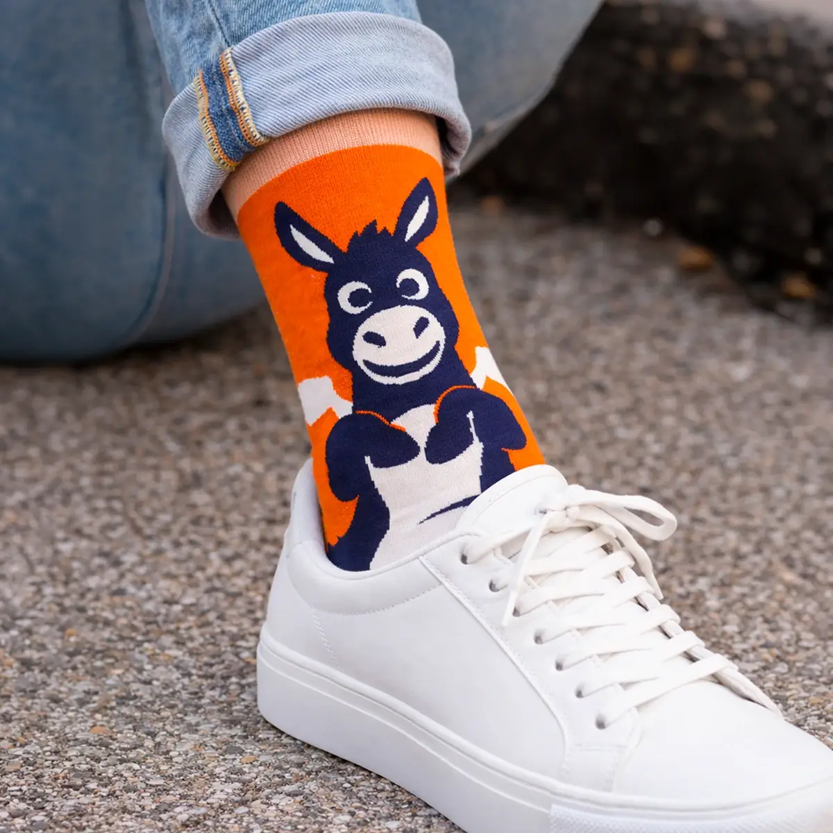 יצרנו את הגרביים האלה בייצור ייחודי, אחרי הרבה שינויי גוונים ופוזיציות של חמורים, כי רצינו להביא לכם משהו טוב שאנחנו גאים בו.